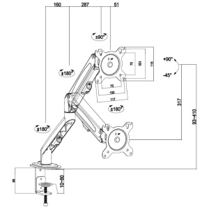 זרוע שולחנית דו מפרקית למסכים "27-"17