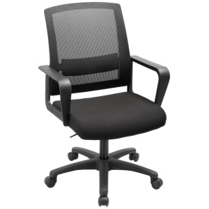 The Miracase MeshLoop office chair combines a mesh back with a fabric seat, fixed loop handles, and a butterfly mechanism with one locking position for continuous work comfort.The Miracase MeshLoop chair is designed to provide a comfortable and simple seating solution for an office work environment.The mesh back allows for ventilation and comfort over long working hours, and the fabric-lined seat provides a sense of stability and softness.The chair features fixed loop handles that provide support for the hands and maintain a comfortable seating position. The butterfly mechanism allows for basic adjustment and locking in one position according to the user's preference. The black nylon base adds stability and durability for everyday־daily use.