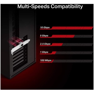 10 Gbps Networking – Combined with the latest 10GBase-T Technology, TX401 delivers extreme speeds of up to 10 Gbps, which is 10× faster than typical Gigabit adapters, guaranteeing smooth data transmissions for both internet access and local data transmissions.†Versatile Compatibility – With extreme speed and ultra-low latency, 10GBase-T is backwards compatible with Fast Ethernet and Gigabit Ethernet, automatically negotiating between higher and lower speed connections.CAT6A Ethernet Cable – To maximize TX401’s performance, a 1.5 m CAT6A Ethernet Cable is included—rated for up to 10 Gbps while a regular cable is only rated for 1 Gbps.Low-Profile and Full-Height Brackets – In addition to the standard bracket, a low-profile bracket is provided for mini tower computer cases. Customized options give you the flexibility to find a bracket that perfectly fits your board design.Comprehensive System Support – Fully compatible with Windows 10/8.1/8/7, Windows Servers 2019/2016/2012 R2, and Linux to meet your diverse operating system needs.