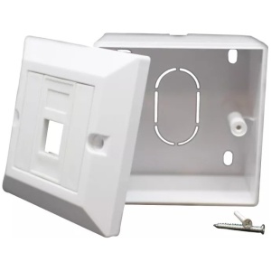 Single Port Faceplate 45mmThis brand new range of single socket Ethernet faceplates support one (1) module,come complete with fixing screws and are compatible with standard backboxes.One (1) CAT5e or CAT6 LAN module or blanking plates can be used.Features:Can be used for One RJ45 module or plateSuitable for CAT5e/CAT6 LAN ModulesCompatible with standard backboxes45mm x 45mm (W x H)Includes fixing screws (2)White finish