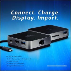 When the gadget pros at Ars Technica called the OWC USB-C Travel Dock E the “Best Hub for iPad” and the “Best Travel Hub,” we thought our work was done. But we always strive to make the best even better. So, when tech users said they wanted an Ethernet port on their travel dock, their wish was our command. The same unrivaled high-speed data performance, pass-through power, and versatility now with the reliability of Gigabit Ethernet connectivity! Meet the 6-port OWC Travel Dock E.6 Ports: Maximize your mobile connectivity with two USB 3.2 Type-A ports, HDMI 2.0 port, SD card reader, Gigabit Ethernet port, and USB-C power pass throughFast and Convenient: Connect a portable drive, keyboard, or mouse via one of the USB 3 ports1Stay Charged: Charge small mobile devices like wireless earbuds, smartwatches, and most smartphones through one of the USB 3 ports2See the Bigger Picture: Connect to displays, TVs, and projectors with up to 4K resolution via the HDMI 2.0 portBetter Connection: Say goodbye to low quality, patchy Wi-Fi by connecting to the Gigabit Ethernet portIngest Your Work: Copy photos and movies at speeds up to 312MB/s via the SD card readerPowerful Option: Bus powered, or use existing USB-C power adapter to provide up to 100W pass-through charging power to a notebook or other device3 Take Anywhere: Lightweight, palm-sized aluminum housing with integrated USB-C cableWorks with All: Adds ports to Macs, PCs, tablets, or phones with a built-in USB-C or Thunderbolt 3 port