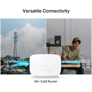Advanced 4G+ Router – supports 4G+ Cat6 to boost the data speeds of up to 300 Mbps*Plug a SIM card and play – no configurations needed, compatibility of SIM cards in 100+ countries are assured by years of field testsMU-MIMO supported – simultaneous data streams increase WiFi throughput and network efficiency.EasyMesh-Compatible – Flexibly Create Whole Home Mesh WiFiBetter Signal for Connections Everywhere – enjoy stable and efficient connections to every device.Full Gigabit Ports – provides reliable wired connections for bandwidth-intensive devices such as game consoles and IPTVsWi-Fi Router Mode – plug an Ethernet cable into the WAN/LAN port for flexible access as a backup option if you can't get a 4G connectionEasy setup and management all by Tether app