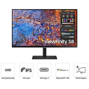 SAMSUNG 27" ViewFinity S8 4K IPS TypeC90W & RJ45 Monitor