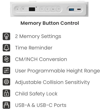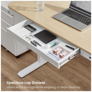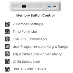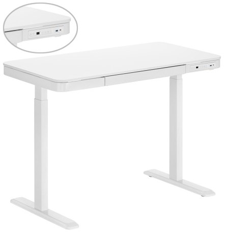 Designed with an elegant appearance and ultra-thin under-desk drawer, the S08-22D-SW provides an ideal sit-stand solution for the modern home or office workspace while keeping a clean look. Integrated memory control including USB-A & USB-C ports ensures easy use and convenient charging. And gyro-current collision avoidance system promises safety during up and down movement.FEATURESMotor(s) is(are) Thermal and Overload Protected: for safety and longevityStorage Drawer: meet the various storage demands of supplies while keeping a clean lookProgrammable height range: customizes the minimum and maximum height settings to accommodate objects around you, such as under desk cabinets or storage unitsUSB Port: convenient for charging your gadgetsEasy-to-Use Press Controller: makes height adjustment easyProgrammable Proprietary Gyro-Current Collision Avoidance System: improved sensing technology for better detection of soft and hard objects in the movement pathSit/Stand Time Reminder: for regular movementMulti-Functional Hook: for bags, cups or any other hanging items