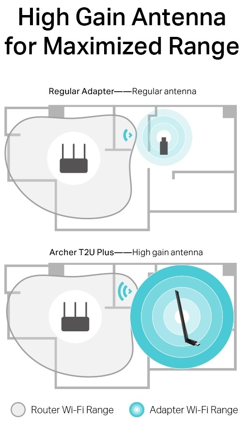 High-Speed Wi-Fi: 256QAM support increases the 2.4 GHz data rate from 150 Mbps to 200 Mbps, 200 Mbps on the 2.4 GHz band and 433 Mbps on the 5 GHz band, ensure you fully enjoy fast AC Wi-Fi.Dual Band Wireless: 2.4 GHz and 5 GHz band provide flexible connectivity, giving your devices access to the latest dual-band Wi-Fi router for faster speed and extended rangeHigh-Gain Antenna: A 5dBi high-gain antenna greatly enhances the reception and transmission signal strength of the USB adapterSupports the Latest Operating Systems: Fully compatible with Windows 10/8.1/8/7/XP and Mac OS X